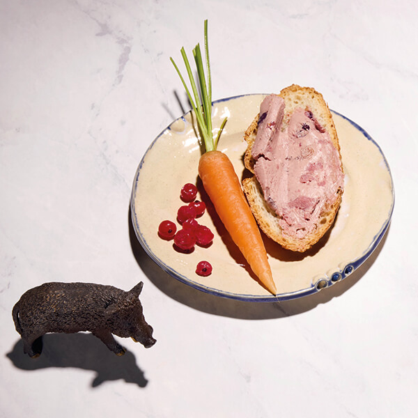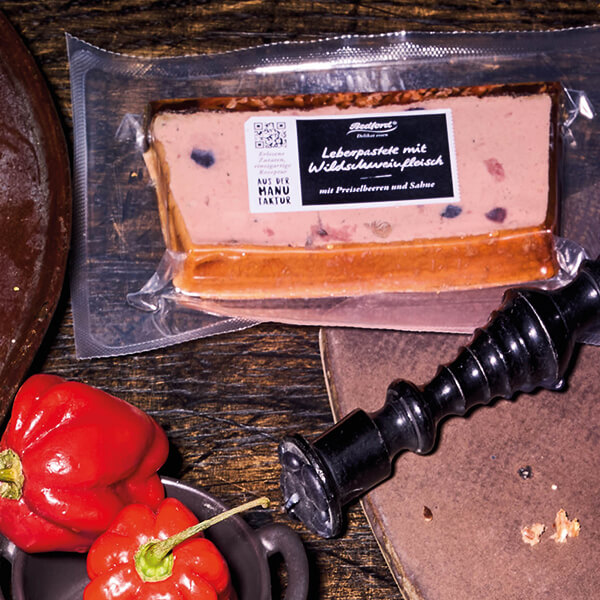 • aus frischem Wildschweinfleisch und sorgfältig vorbereiteter Schweineleber